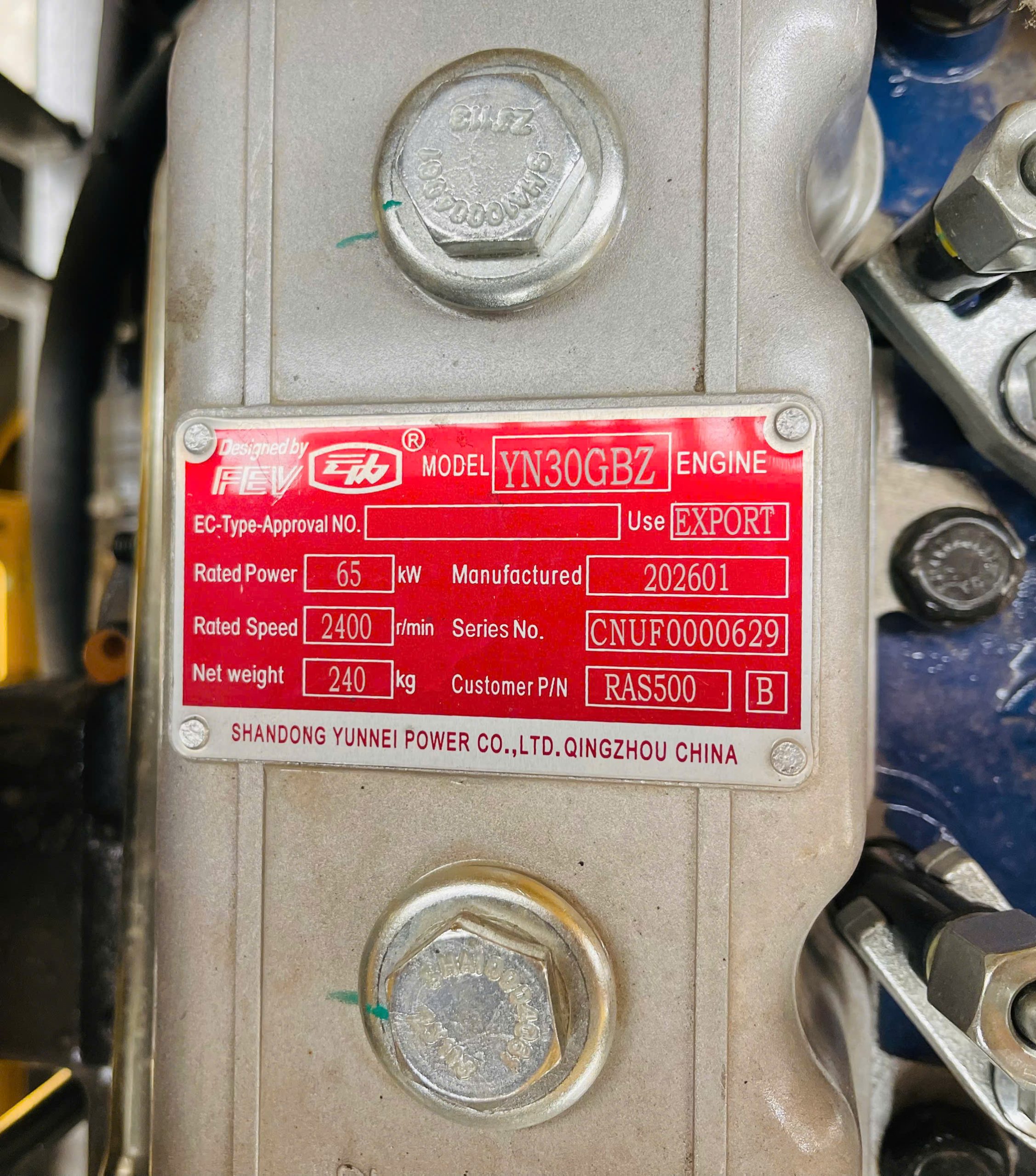 - Loại động cơ: Yunnei