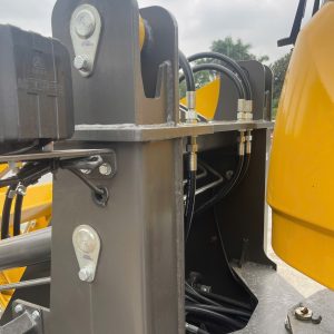 Máy có thể trang bị thêm bộ công tác tháo lắp nhanh, chuyển đổi gầu xúc, càng nâng một cách nhanh chóng: